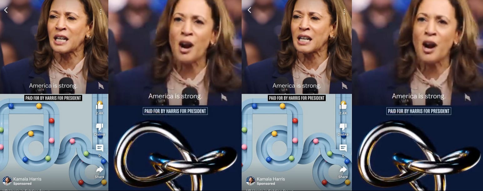 L’evoluzione social e sociale la si può perfettemante notare in questo periodo, quello delle Elezioni Americane. Dopo il tracollo digitale di Biden (ne parlavo nella precedente newsletter), Harris sta puntando tutto sui social sperimentando convention dedicate ai creator e agli influencer, sperimentando pubblicità che seguono i trend dei creator.