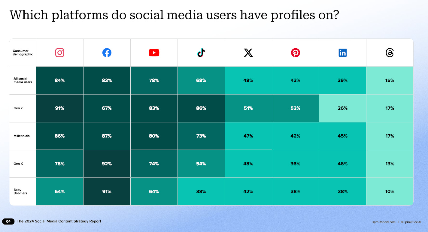 Secondo il report di Sprout Social (vi carico la risorsa alla fine della newsletter) che sono riuscito ad avere grazie alla work-chat di Matt Navarra, esperto mondiale dei social, Facebook è in ottima salute e Instagram sta benone, al contrario di quello che si dice.